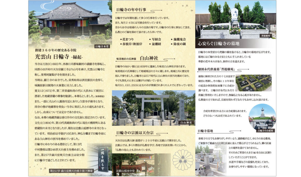 愛知県春日井市の光雲山日輪寺様のパンフレットを作成させて頂きました。